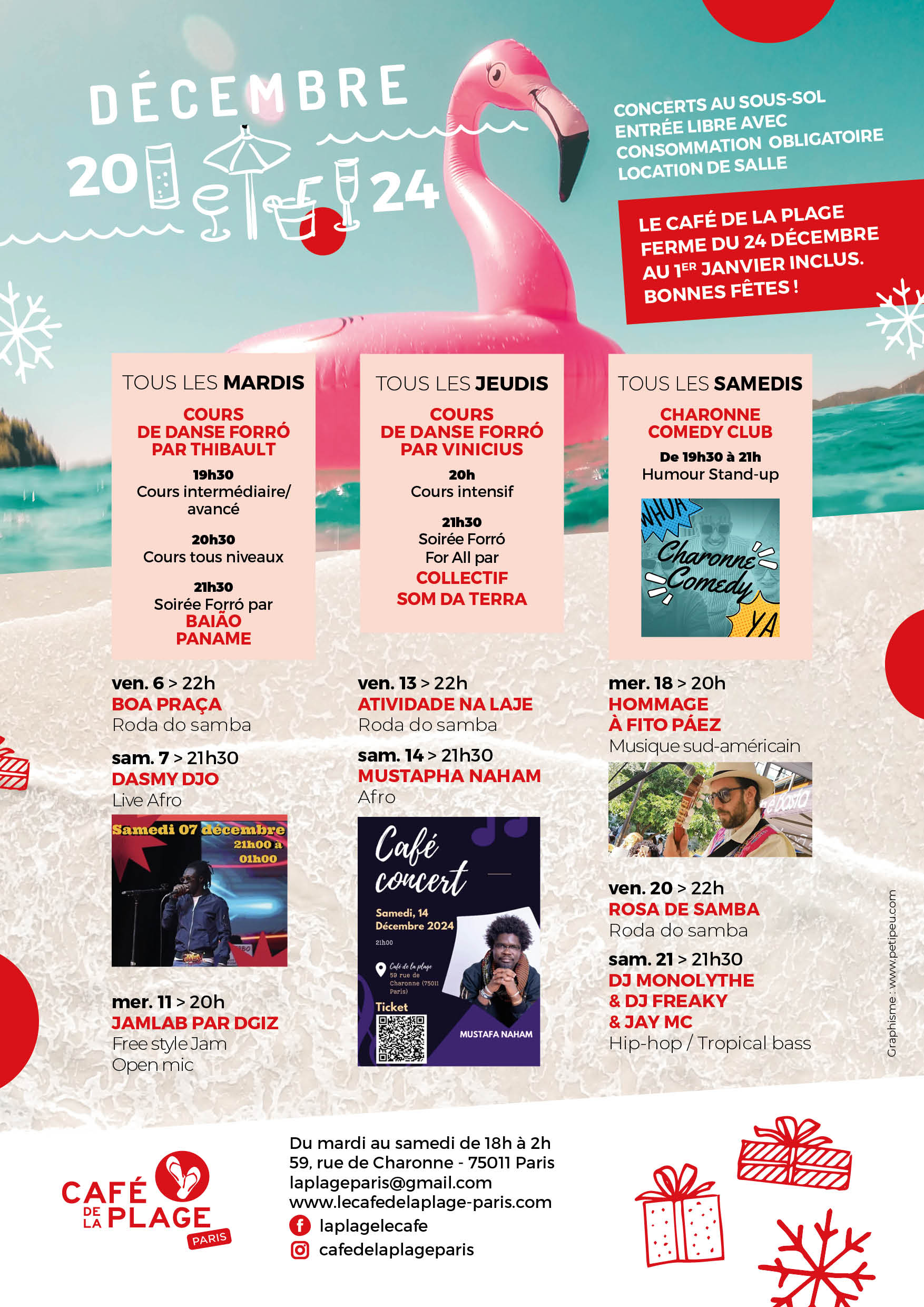 59 Rue de Charonne, 75011 Paris -laplageparis@gmail.com- du mardi au samedi de 18h à 2h