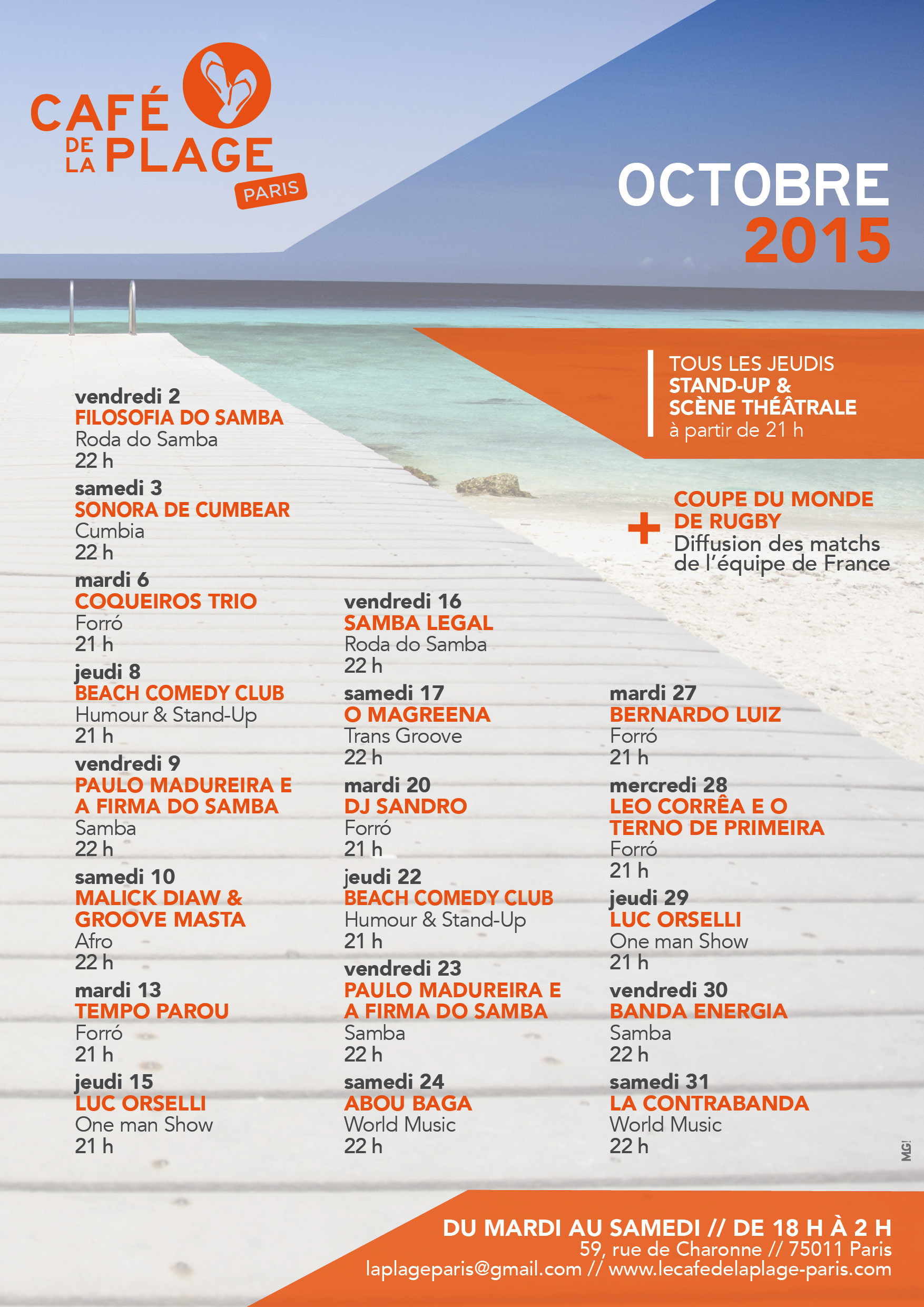 59 Rue de Charonne, 75011 Paris -laplageparis@gmail.com- du mardi au samedi de 18h à 2h