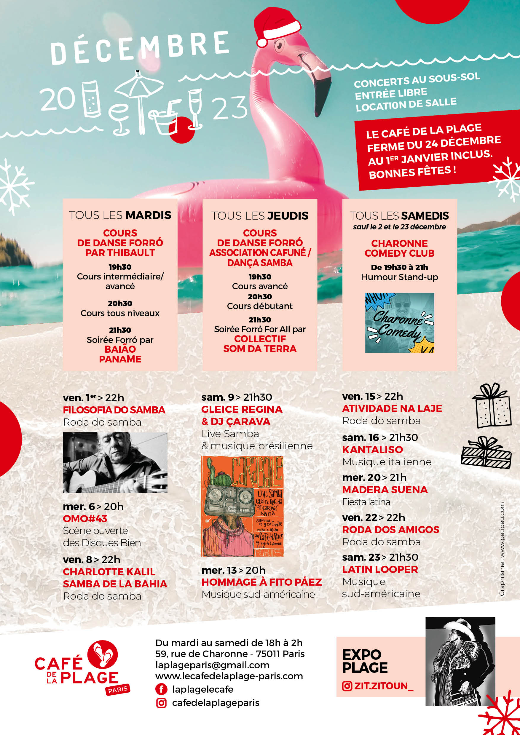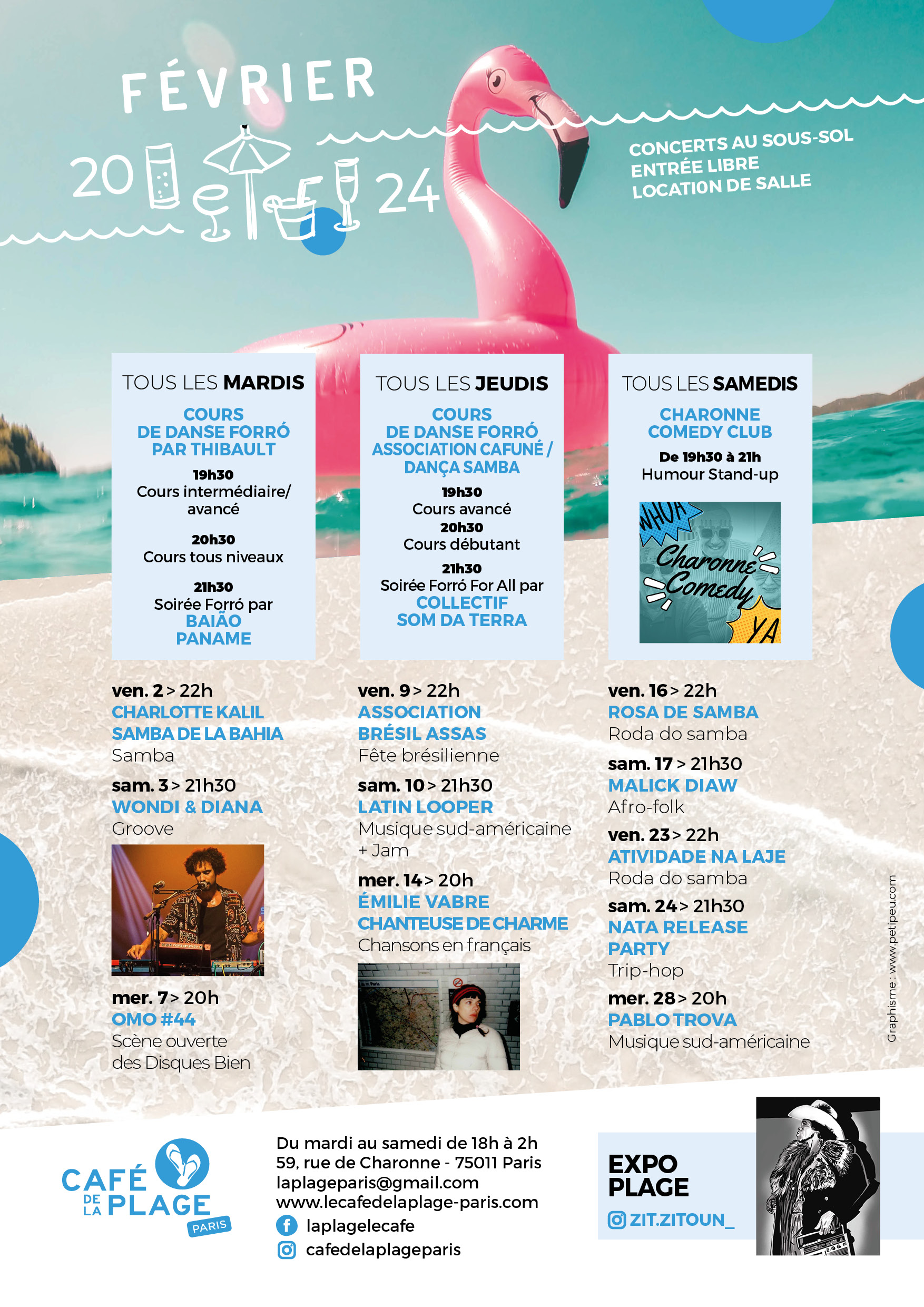 59 Rue de Charonne, 75011 Paris -laplageparis@gmail.com- du mardi au samedi de 18h à 2h